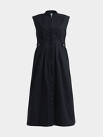 Elevate your wardrobe with the Jet Black Poplin Maxi Dress. Made from 100% Cotton, it features side button detailing for added flair.