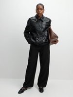 Stay stylish with the Jet Black PU Bomber jacket. Made from 65% polyurethane and 35% polyester, this jacket is perfect for any occasion.