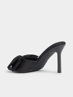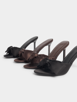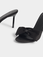 Step out in style with Jet's black satin heeled sandals featuring a statement big bow. This chic footwear is perfect for adding a touch of glamour to any outfit.