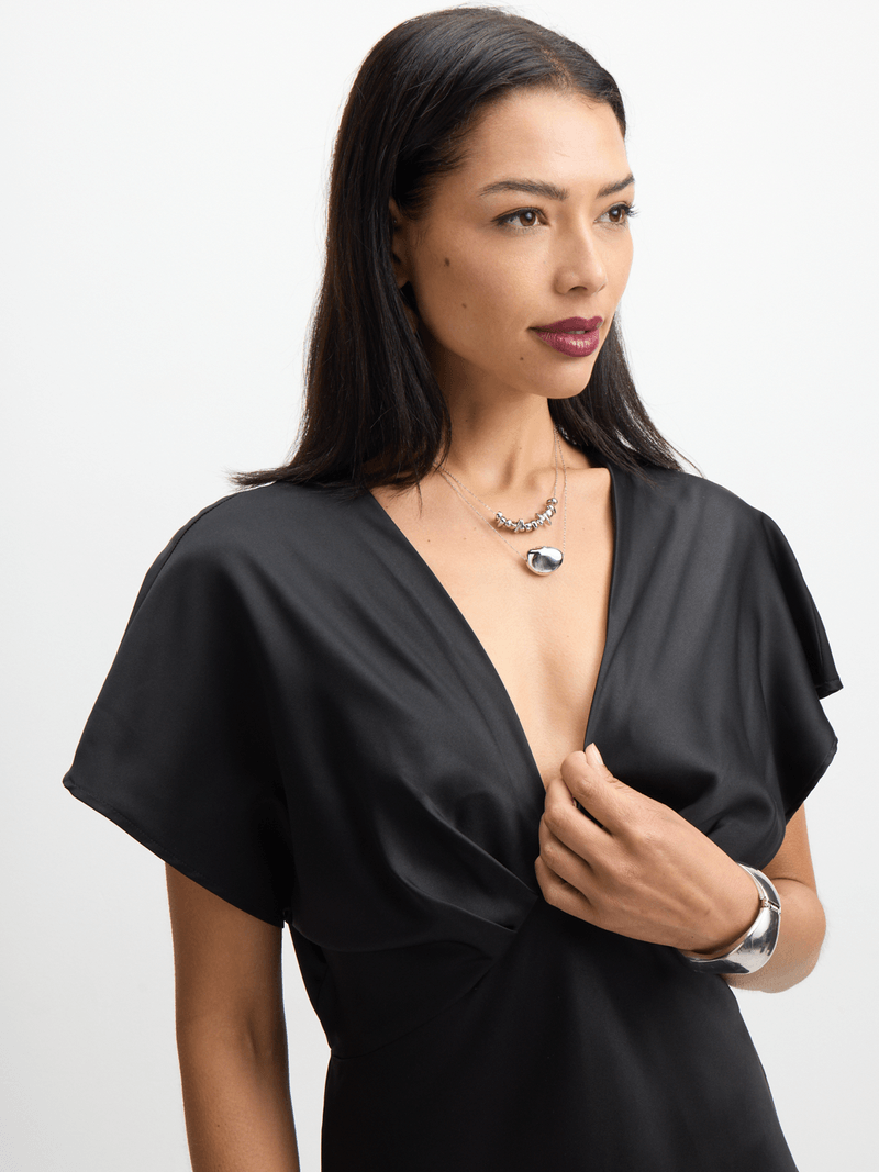 Introducing the Jet Black Satin Maxi Dress, a luxurious and versatile addition to your wardrobe. Made from 100% polyester, this dress is perfect for any special occasion or night out.