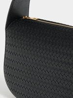 Meet our sleek black woven shoulder bag, perfect for everyday essentials. Crafted with durable polyester material, this bag features a spacious main compartment and an adjustable strap for comfort.
