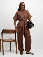 Elevate your style with Jet Brown Airflow Balloon Pants. Made with a luxurious blend of 90% Rayon and 10% Nylon, these pants offer breathability and comfort.