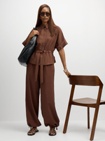 Introducing the Jet Women's Brown Crop Airflow Tie Blouse, a stylish addition to your wardrobe. Made from 90% Rayon and 10% Nylon for a comfortable fit.