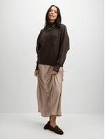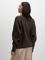 Stay cozy and stylish in the Jet Brown Slouchy High Neck Top. Made with a blend of polyester, spandex, and acrylic, this knit top is perfect for any casual occasion. With its relaxed fit and high neckline, it's a must-have addition to your wardrobe.