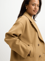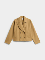 Introducing the Jet Caramel Melton Short Coat, perfect for staying cozy and stylish. Made with 100% polyester, this double-breasted coat is a must-have for any wardrobe.