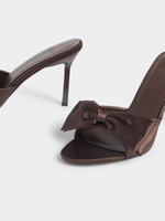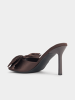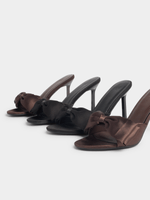 Step out in style with our Jet Chocolate Satin Big Bow Heeled Sandals. These chic heels feature a statement bow detail that adds a touch of glamour to any outfit.