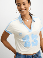 Stay comfortably stylish in the Jet Cream Faded Print Fitted Collar T-shirt. Made from 95% cotton and 5% spandex for a soft, stretchy feel.