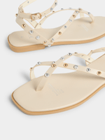 Step out in style with the Jet Ecru Studded Toe Wrap Ankle Tie Sandal. These trendy sandals feature studded detailing and a wrap-around ankle tie for added flair. Crafted from durable polyurethane material, they are both stylish and comfortable.