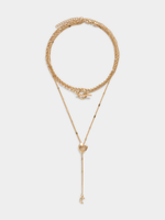 Elevate your style with the Jet Gold 4 Layer Heart and Moon Necklace. Crafted from high-quality metal, this piece features intricate detailing with heart and moon charms.