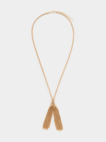Elevate any outfit with our stunning gold hanging chain tassel necklace. Made of high-quality metal, this stylish accessory adds a touch of glamour to your look.