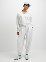 Introducing the Jet grey melange luxe pleated barrel jogger, a must-have for ultimate comfort and style. Made with 95% polyester and 5% spandex for a perfect fit.