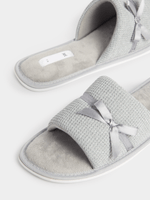 Step into comfort with Jet's grey waffle bow opentoe slippers. The cozy waffle design and stylish bow detail elevate lounging at home.