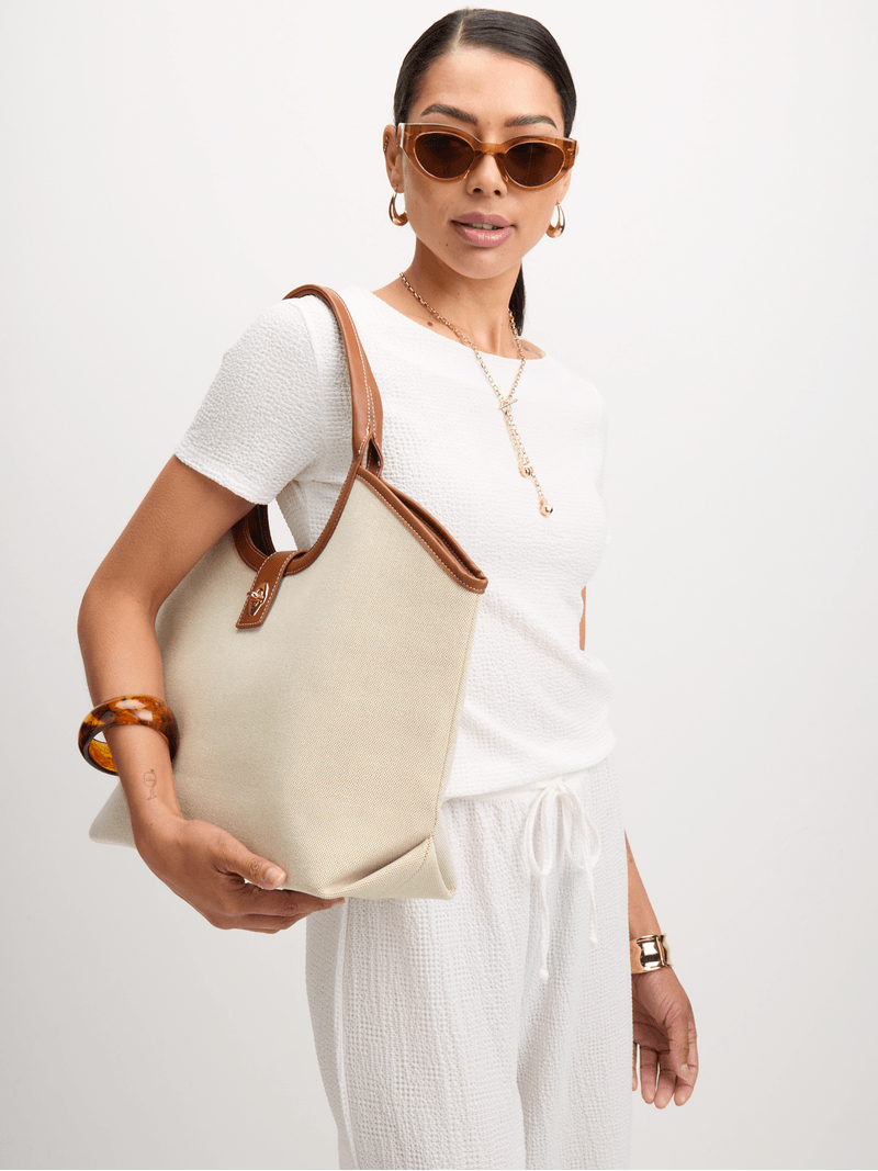 Elevate your everyday look with the Jet Natural Canvas Buckle Shopper Bag. Crafted with durable materials, this bag features a stylish buckle closure and spacious interior for all your essentials.