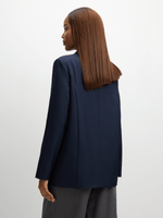 Elevate your style with the Jet Navy Double Breasted Twill Blazer. Made with a blend of 96% polyester and 4% spandex, this blazer is perfect for any occasion.