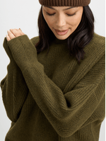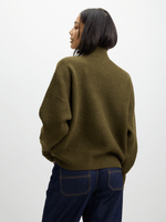 Stay cozy in style with the Jet Olive Green Slouchy High Neck Top. Made with a soft blend of polyester, spandex, and acrylic, this top is perfect for casual days or lounging at home.