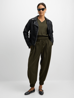 Introducing our Jet Olive Luxe V Neck Tee! Made from 95% polyester and 5% spandex for ultimate comfort and stretch. This deep V-neck tee features a boxy fit, perfect for any casual occasion.
