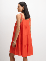 Get ready to turn heads in this vibrant orange strappy tier mini dress by Jet. Made from a luxurious blend of 88% Rayon and 12% Nylon, this dress is both stylish and comfortable.