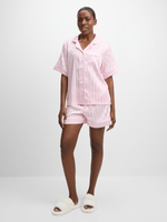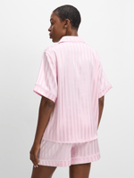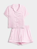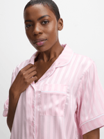 Unwind in style with our women’s pink stripe satin shorts pyjama set by Jet. Made of soft polyester, this set features a cute pink stripe design that exudes charm.
