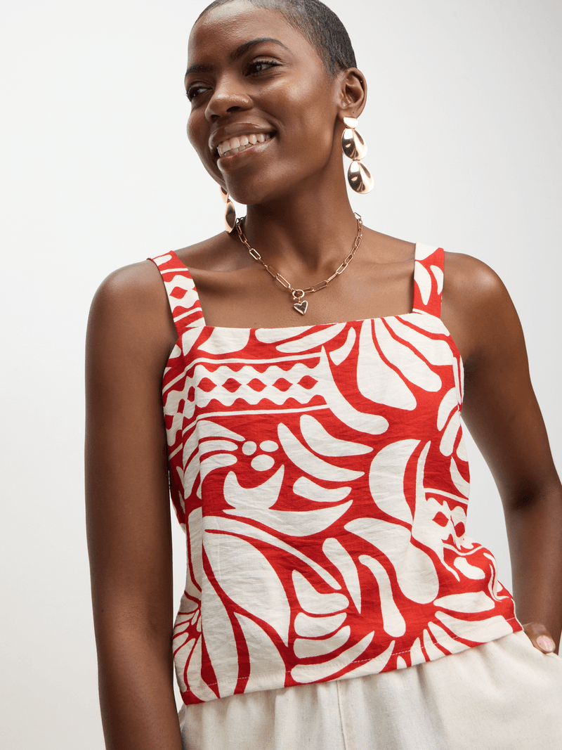 Introducing the Jet Red Floral Crop Sleeveless Top, a versatile and stylish addition to your wardrobe. Made with 85% Rayon and 15% Nylon for a comfortable fit. Locally made and returnable. Elevate your look with this trendy piece.