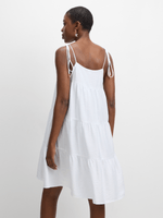 Elevate your summer style with the Jet White Strappy Tier Mini Dress. Made from a luxurious blend of 88% Rayon and 12% Nylon, this dress is light, breathable, and perfect for any warm-weather occasion.