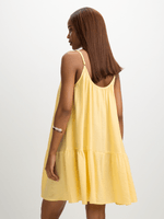 Get ready to turn heads in the Jet yellow strappy tier mini dress. Made from 88% rayon and 12% nylon, this dress is both comfortable and stylish.
