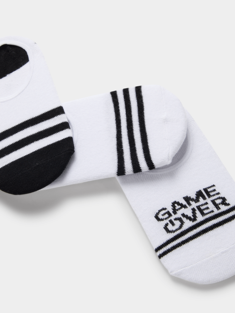 Introducing Jet Younger Boys 3 Pack White Black Gamer Stripe Secret Socks. These socks are made from a comfy cotton blend.
