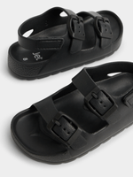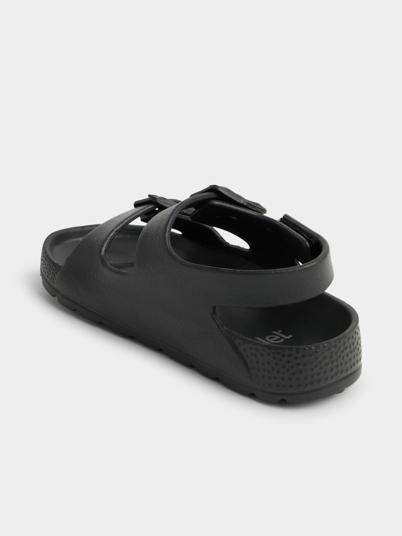 Step up your little one's summer style with the Jet Younger Boys Black Eva Birky sandals. Made from durable EVA material, these comfy sandals are perfect for all-day wear. The sleek black design adds a touch of cool to any outfit. Treat your child to these must-have sandals today!