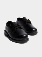 Step up your school shoe game with these jet black leather kicks. Made from premium leather for durability and style. Perfect for any school day with their comfortable fit. Get your hands on these must-have shoes that are sure to make you stand out.