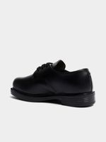 Step up your school shoe game with these jet black leather kicks. Made from premium leather for durability and style. Perfect for any school day with their comfortable fit. Get your hands on these must-have shoes that are sure to make you stand out.