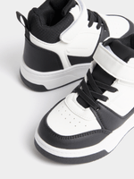 Meet the Jet Younger Boys Black/White Hi-Top Sneakers, a trendy option for stylish little ones. Made of durable polyurethane, these sneakers are perfect for everyday wear. With a classic black and white design, they are easy to match with any outfit.