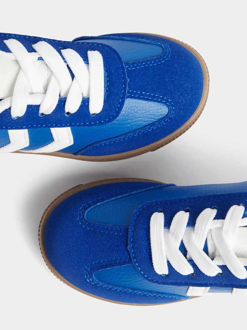 Step up your little one's style with these blue retro sneakers from Jet. Crafted with Polyurethane material for durability. Features include a comfortable fit, retro design, and easy-to-wear slip-on style. Elevate any outfit with these trendy kicks.