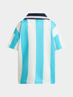 Introducing the Jet Younger Boys Blue Stripe Match Collar Sports T-shirt. Made of polyester for comfort and durability. This stylish tee features a matching collar for a sporty look.