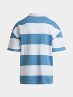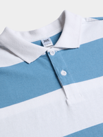 Introducing the Jet Younger Boys Blue White Stripe Fashion Golfer! Made from comfortable cotton, this stylish golfer is perfect for any occasion.