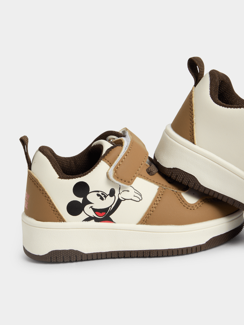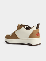 Meet the Jet Younger Boys Brown Ecru Mickey Court Sneaker! This stylish sneaker features a fun character design that kids will love.