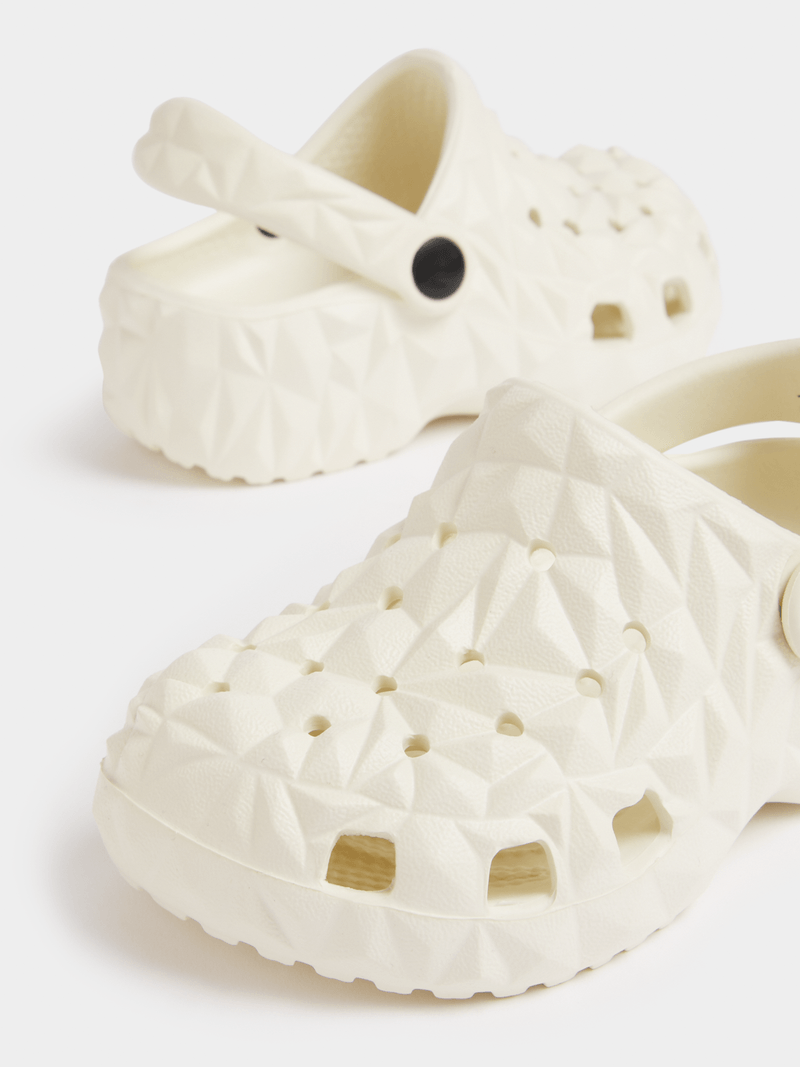 Introducing Jet Younger Boys ecru Geometric Clogs for stylish little feet. Made from durable EVA material. Stand out with geometric design. Perfect for everyday wear. Easy to slip on and off. Keep feet comfy and cool all day long. Ideal for playtime or casual outings. Elevate your child's footwear game with Jet!