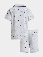 Introducing the Jet Younger Boys Grey Stars Button Through PJ Set, perfect for cozy nights. Made with a soft cotton blend for ultimate comfort.