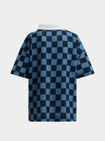 Introducing the Jet Younger Boys Match Blue Checkerboard Fashion Golfer! Made locally with a polyester blend, this stylish golfer is perfect for your little one. The blue checkerboard design adds a trendy touch.