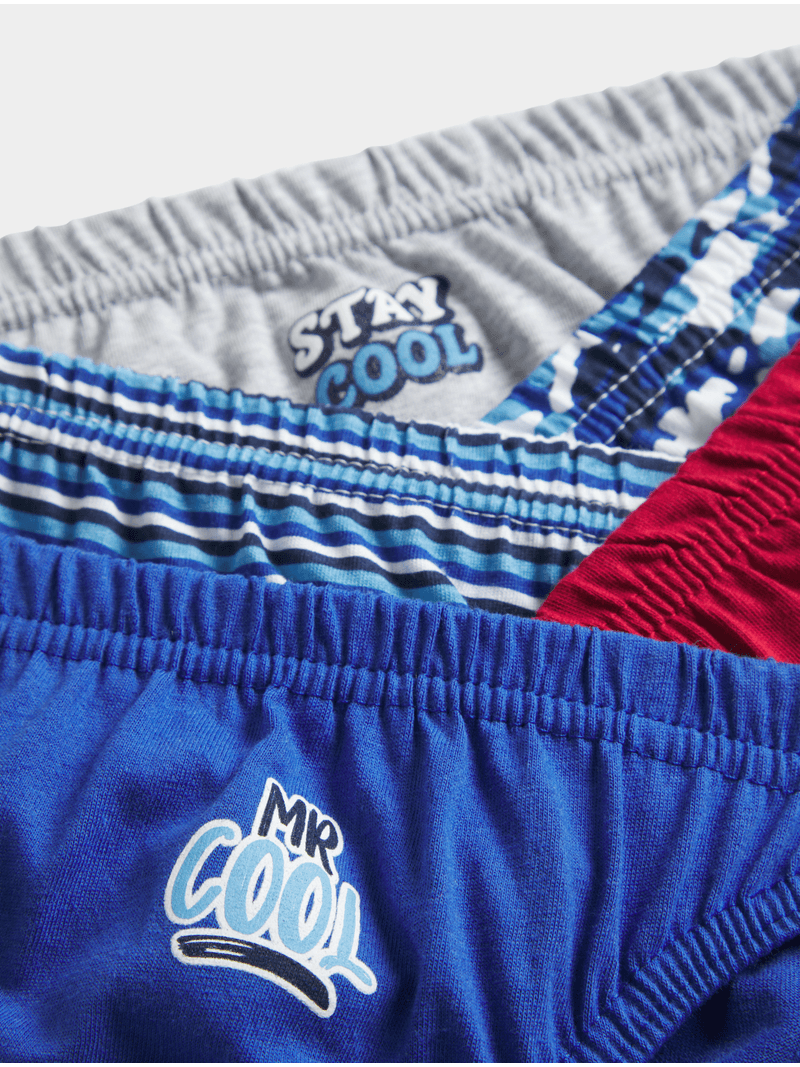 Get ready for all-day comfort with the Jet Younger Boys Multicolour 5 Pack Briefs. Made from soft Single Jersey material, these briefs offer a snug fit. With a fun blue camouflage stripe pattern, these briefs are perfect for everyday wear. Stay comfortable all day long with these stylish and versatile briefs.