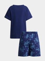 Get ready for bedtime fun with the Jet Glow In The Dark Short PJ Set. The navy top features an adorable Stitch graphic that glows in the dark, paired with matching shorts for comfort. Made from soft cotton, this set is perfect for a good night's sleep or lounging around.