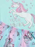 Snuggle up in style with the Jet Aqua Unicorn Pyjama Set! Made of soft cotton, this adorable PJ set features a cute unicorn print on the top and matching shorts. Perfect for a cozy night's sleep or lounging around the house. Add a touch of magic to your little one's bedtime routine!