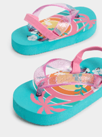 Step into style with Jet Blue Palm Print Flip Flops! These fun and trendy sandals feature a vibrant palm print design perfect for summer.
