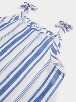 The Jet Blue Stripe Bow Dress is a must-have for your little one. Made of soft polyester, this dress features a cute bow detail. Perfect for any occasion, this dress is both stylish and comfortable.