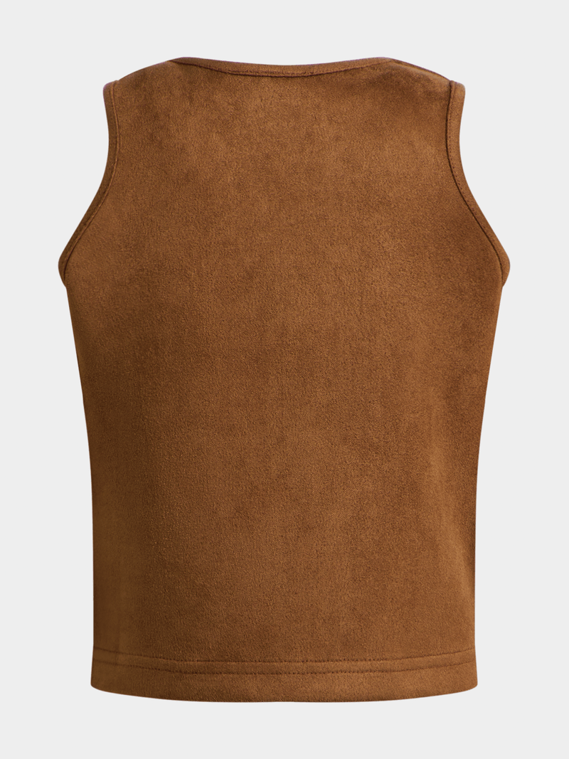 Introducing the Jet brown suede waistcoat, a stylish addition to any young fashionista's wardrobe. Made from luxurious suede, this waistcoat is perfect for adding a touch of sophistication to any outfit.