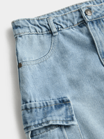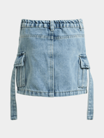 Introducing the Jet cargo denim skirt for your little one's wardrobe! Made with durable denim, this light wash skirt features a trendy cargo design.