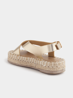 Introducing the Jet gold crossover espadrille sandal for younger girls. This stylish sandal features a comfortable design perfect for all-day wear.