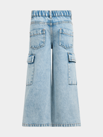 Introducing Jet Younger Girls Light Blue Wide Leg Cargo Denim Pants for a cool, casual look. Made from high-quality denim for durability.