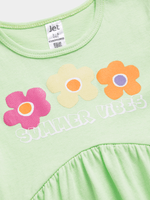 Introducing the Jet Patina Green Frill Dress, ideal for young fashionistas. Made from soft cotton for comfort with charming stripes. This dress is perfect for any occasion and is easy to care for. Let your little one stand out in style with this adorable addition to their wardrobe.