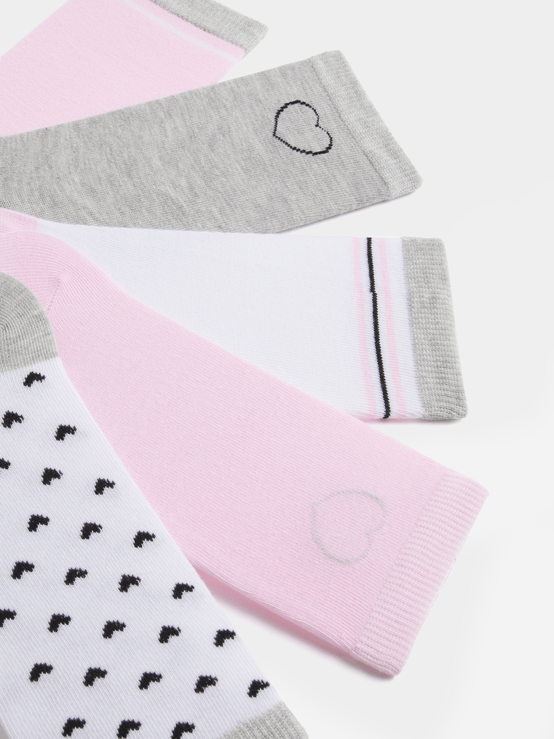 Get ready for sock game upgrades with Jet's Younger Girls Pink/Grey 5 Pack Socks! These vibrant socks feature playful stripes in multiple colors, ensuring your little one is always comfortable and stylish. Made from a durable polyester blend, these socks are perfect for everyday wear. Say goodbye to boring socks and hello to fun fashion!