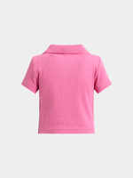 Introducing the Jet Younger Girls Pink Rib Johnny Collar Top in a trendy design. Made with high-quality rib material for comfort and style. Perfect for everyday wear.