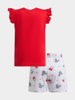 Get your little one snoozing in style with this adorable red Minnie Mouse pyjama set. Made for a comfy night's sleep, this set features a cute Minnie Mouse graphic on the top and matching shorts.